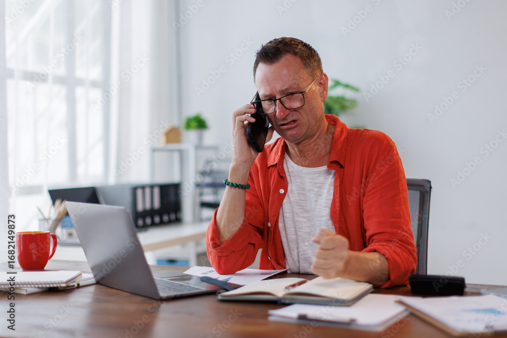 Businessman talking on mobile phone. Male entrepreneur calling someone, having a business call, Man at work, over white background.