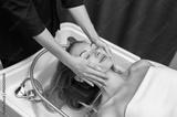 Facial contour massage with hands in spa