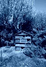 Insect hotel in nature. Habitat for preserving insect biodiversity.