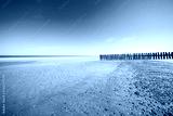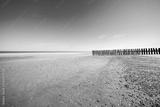 View of the beach near Sangatte on the coast in northern France. Nature by the sea with blue sky and golden sand.