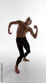 Male performer leaning backward with dramatic gesture and emotional vulnerability. Concept of wordless visual storytelling, zen philosophy, and modern masculinity through art.