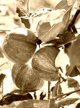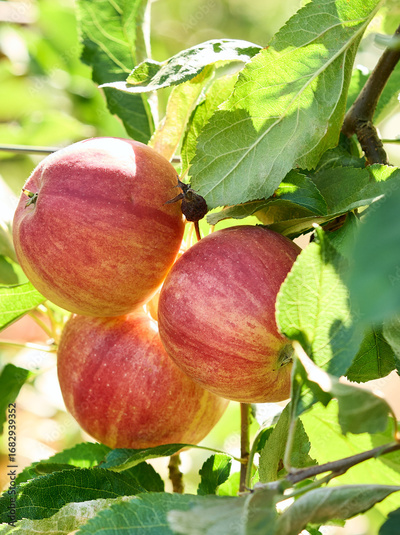 Apples with leaves in the garden