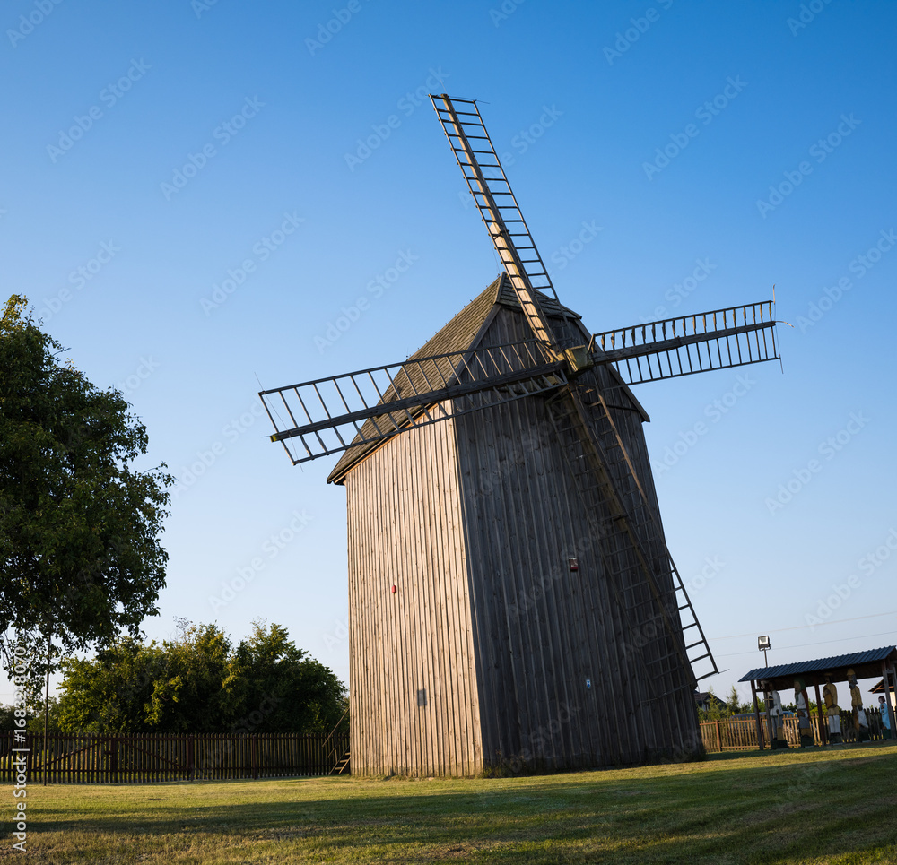 Zabytkowy drewniany XVI w. wiatrak w Ożarowie koło Wielunia
