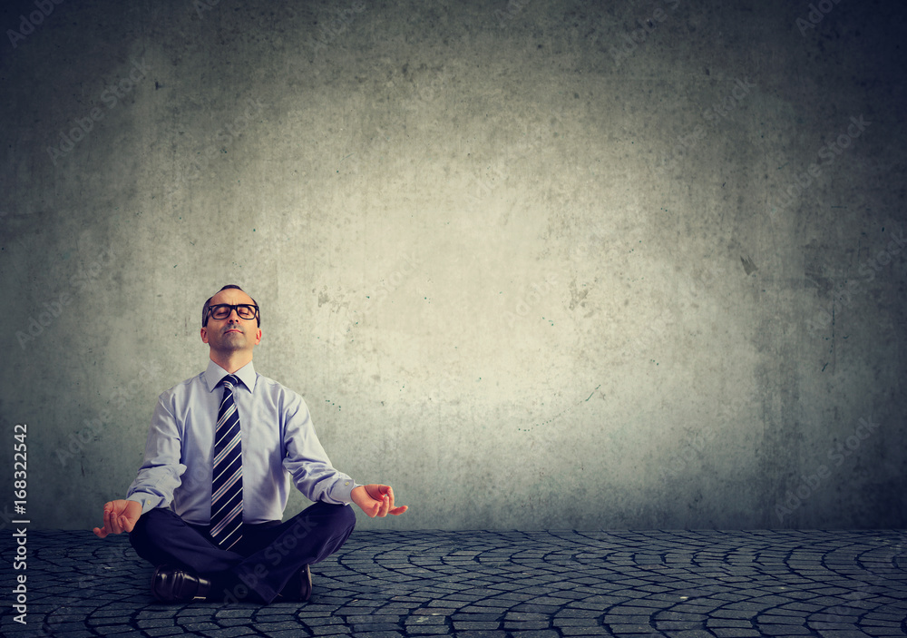 Business man meditating relaxing with eyes closed