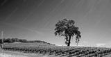California Valley Oak Tree in plowed fields under clear blue skies in Paso Robles wine country in Central California United States - black and white
