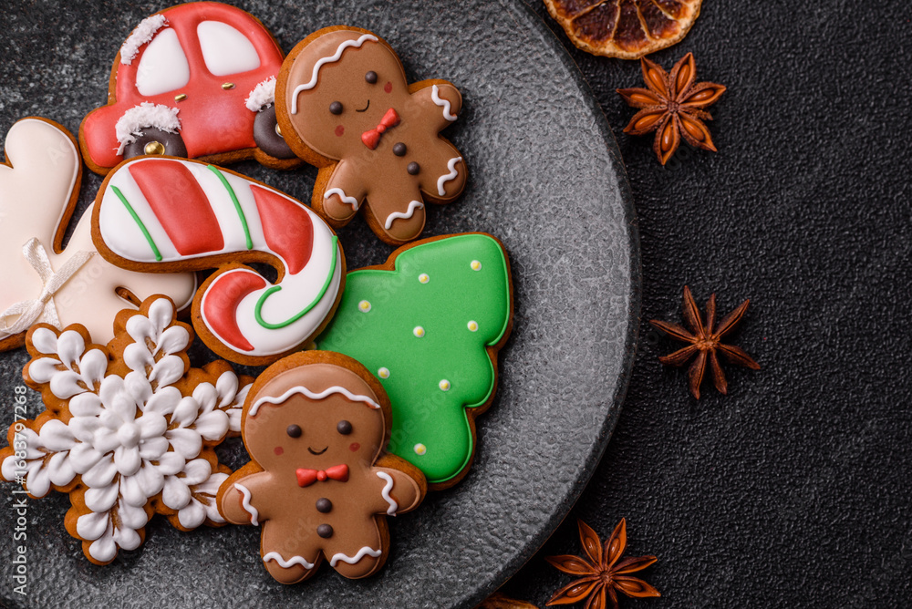Christmas gingerbread cookies as winter holiday food background . Christmas gingerbread