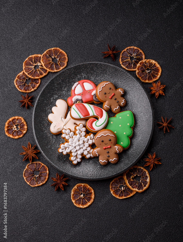 Christmas gingerbread cookies as winter holiday food background . Christmas gingerbread