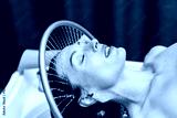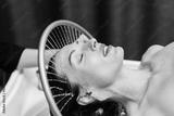 Woman enjoying hydromassage therapy in a serene spa environment, with soothing water cascading over her head, promoting relaxation and rejuvenation through aqua massage techniques