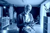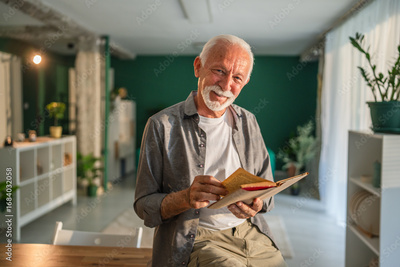 Happy senior man reading a book at home
