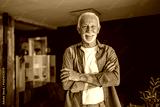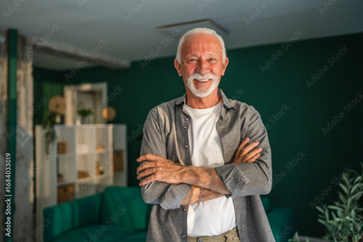 Portrait of smiling senior man with crossed arms at home