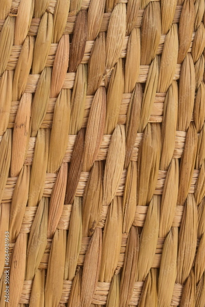 Textura de tecido de palha seca artesanal com fibras naturais trançadas na vertical