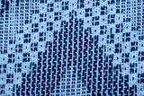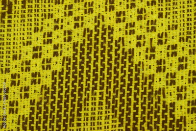 Pano verde neon com desenho indígena, tecido com linhas pretas em formato de seta e triangulo
