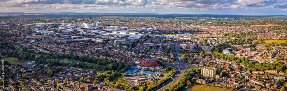 Aerial view of Slough Trading Estate with industrial buildings and surrounding housing