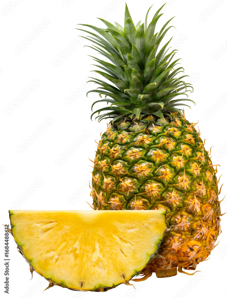 Fresh Pineapple with sliced isolated on white background, Organic Pineapple on white background with work path, High resolution photography PNG file.