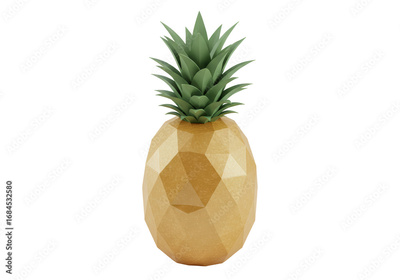 Isolated pineapple fruit, geometrical low poly style, vibrant tropical food, rendering
