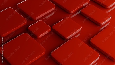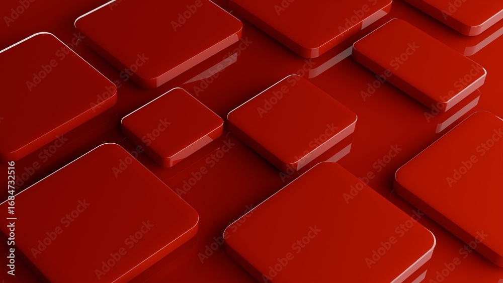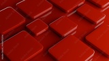 Red gloss paint random rectangles background, abstract 3d render. Modern technology background