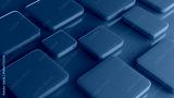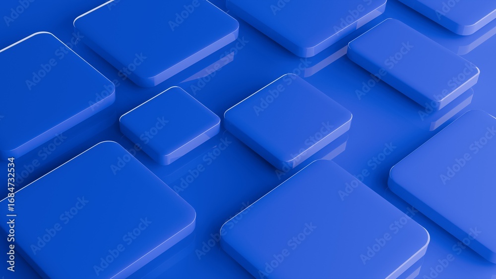 Blue gloss paint random rectangles background, abstract 3d render. Modern technology background