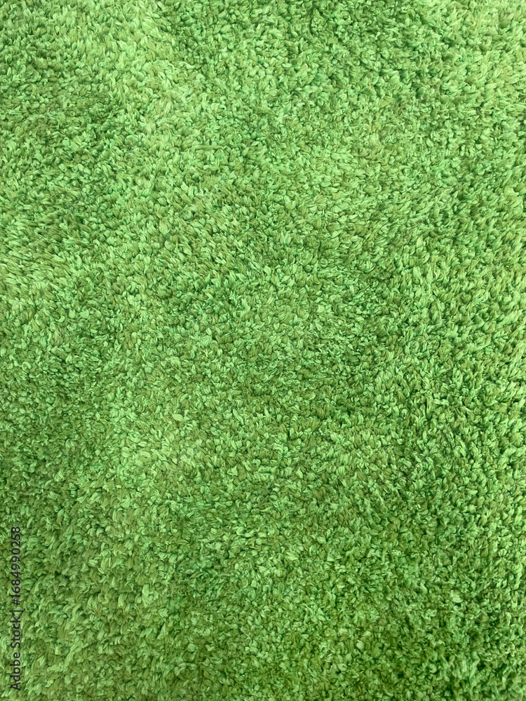 Closeup of soft green fabric texture with fluffy surface. Bright textile background suitable for design, fashion, upholstery, home decor, carpet, towel or eco-friendly style projects.