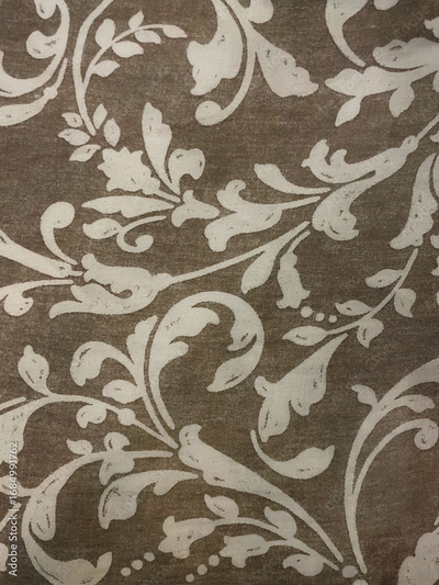 Elegant fabric with vintage floral damask pattern in beige and brown tones. Ornamental textile background perfect for upholstery, interior decoration, wallpaper design, fashion, and classic home style