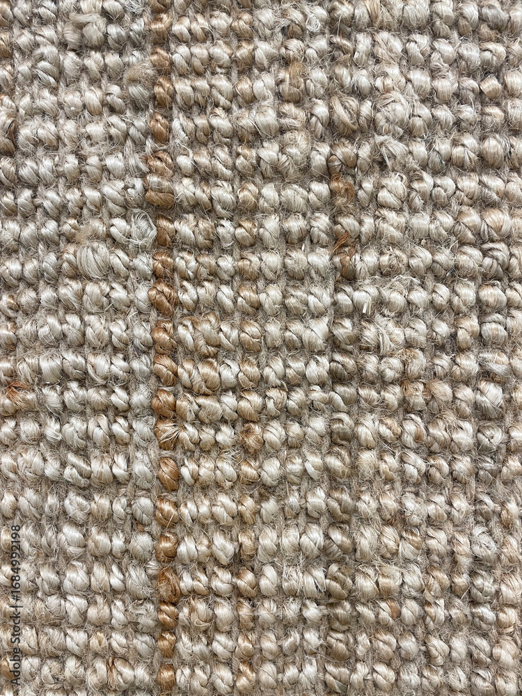 Close-up of natural woven fabric texture in beige and brown tones. Rustic textile background with rough jute or sisal fibers. Perfect for eco design, upholstery, crafts, and interior decoration.