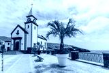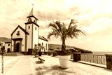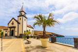 Square with church building and ocean view on coast of Madeira island, Portugal