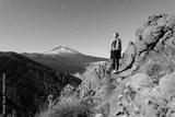 Tourist standing on mountain admiring breathtaking view of volcano Teide, Tenerife, Canary, Spain.