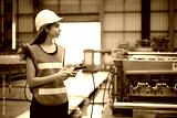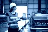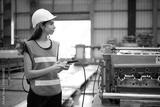 Engineer or worker operating remote switch to control machine in the factory