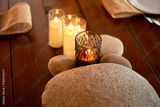 Candles, stones and burlap. An unusual decoration for a dinner or celebration in the Viking style.