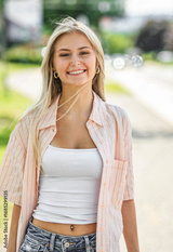 Attractive blonde relaxes while roller skating