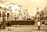 trani, italien - stadtpanorama mit stadttor, denkmal und kirche