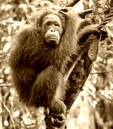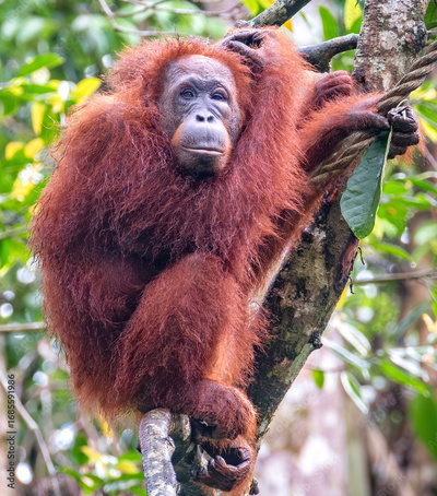 Young Orangutan (Pongo borneo) at the Semenggoh Nature Reserve, Sarawak, Borneo, Malaysia