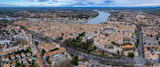 An aerial panorama view around the old town in the city Arles in France on a sunny day in early spring