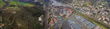 An aerial panorama view around the old town in the city Givors in France on a sunny morning in early spring