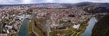 Aerial view of the old town of the city Besancon in France on a cloudy afternoon in early spring.