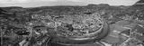 An aerial panorama view around the old town in the city Millau in France on a sunny morning in early spring