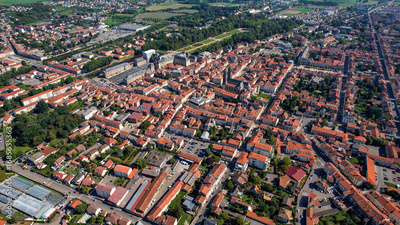Aerial of the old town around the city Luneville in France on a sunny day in late summer.