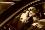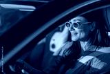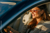 A fashionable woman joyfully enjoys a sunny drive, fully embodying confidence, modern style, and elegance