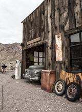 Old vintage car truck abandoned in the desert