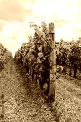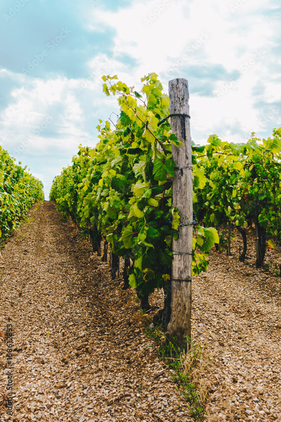 Vines in a vineyard in autumn. Wine grapes before harvest. Italian Wines