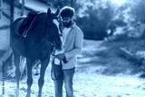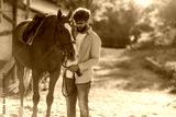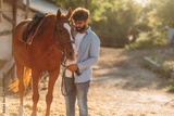 Guy is with horse on the farm