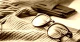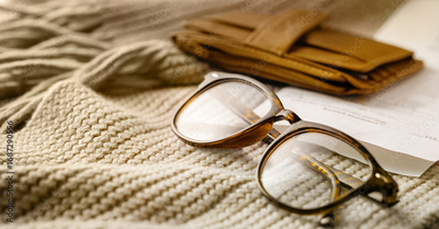 Eyeglasses and a Chic Wallet on Soft, Cozy Textiles for a Fashionable Look