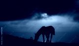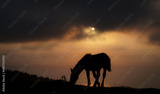 Pottoka horse at sunset on Mount Jaizkibel, Euskadi