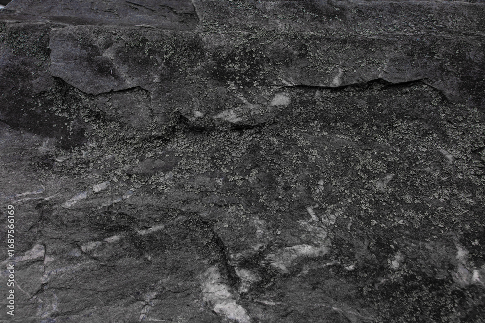 High-resolution close-up of a dark stone surface with natural rough texture and layered structure. Ideal for use in design, architecture, background, or material references