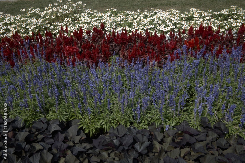 Vibrant colorful flowers blooming in a flowerbed, perfect for background use.