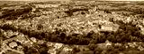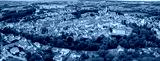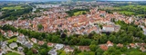 An aerial panorama view above the old town of the city Donauworth on a sunny summer day in Bavaria, Germany