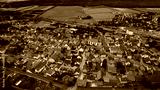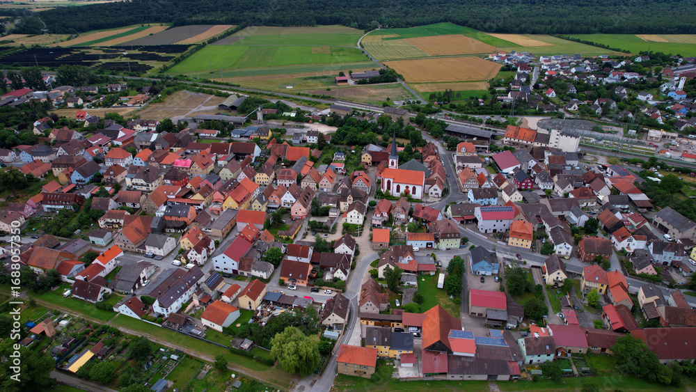 Aerial panorama view of the old town in the city Markt Bibart in Bavaria in Germany on a sunny day in spring