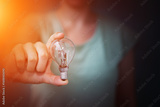 Businesswoman holding a lighbulb in her hand