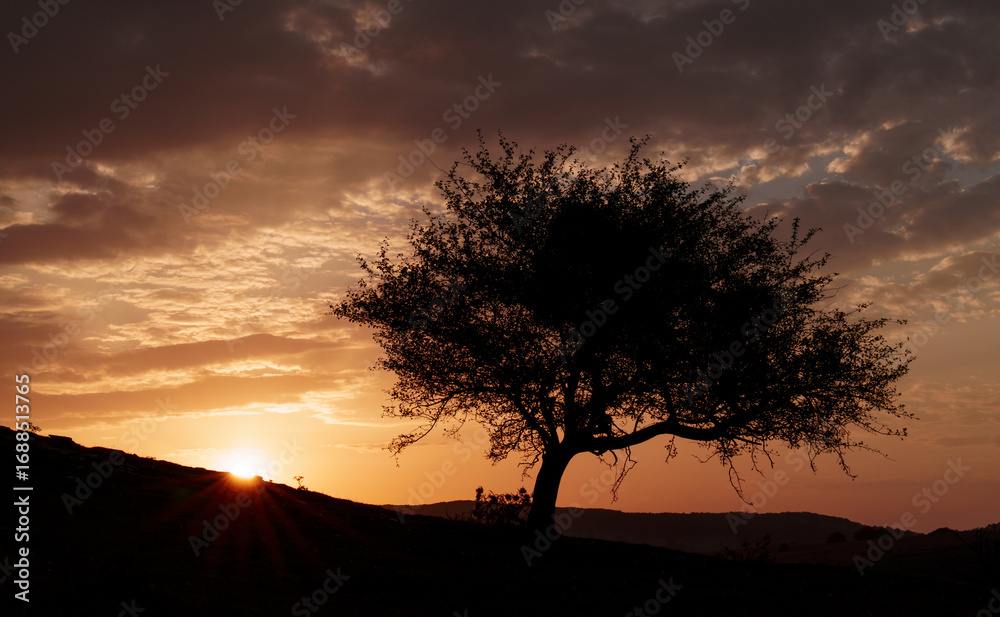 Sierra de Andia. Hawthorn at sunset in the Urbasa and Andia Natural Park, Navarre