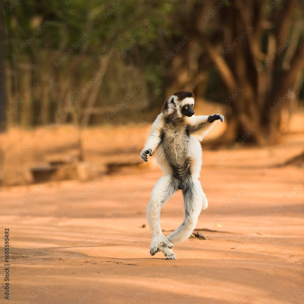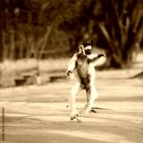 Dancing Verreaux's Sifaka (Propithecus verreauxi), Berenty nature reserve, Madagascar