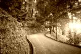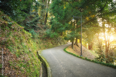 Beautiful summer lamdscape scene of road and forest with sun shine.